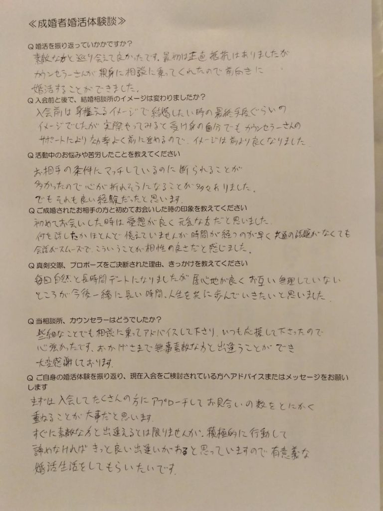 おかげさまで無事素敵な方と出逢うことができ大変感謝しております。